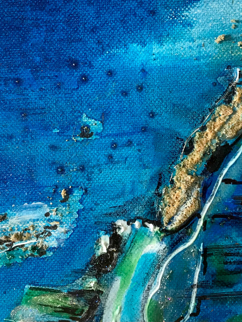 Présentée avec un passe-partout blanc 20 x 20 cm avec une œuvre de 13 x 13 cm.
